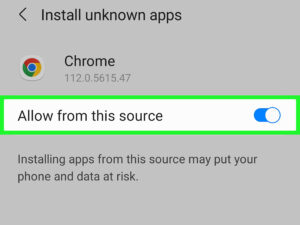 - A message will appear saying, “For your security, your phone is not allowed to install unknown apps from this source.”
